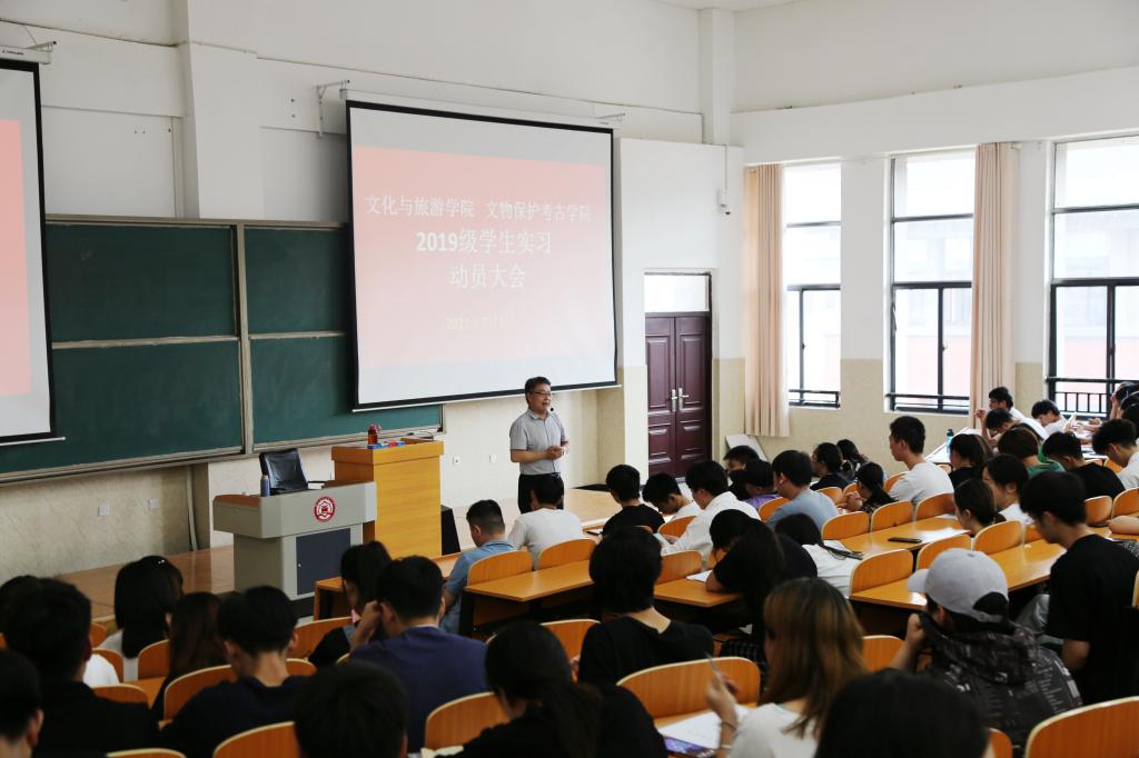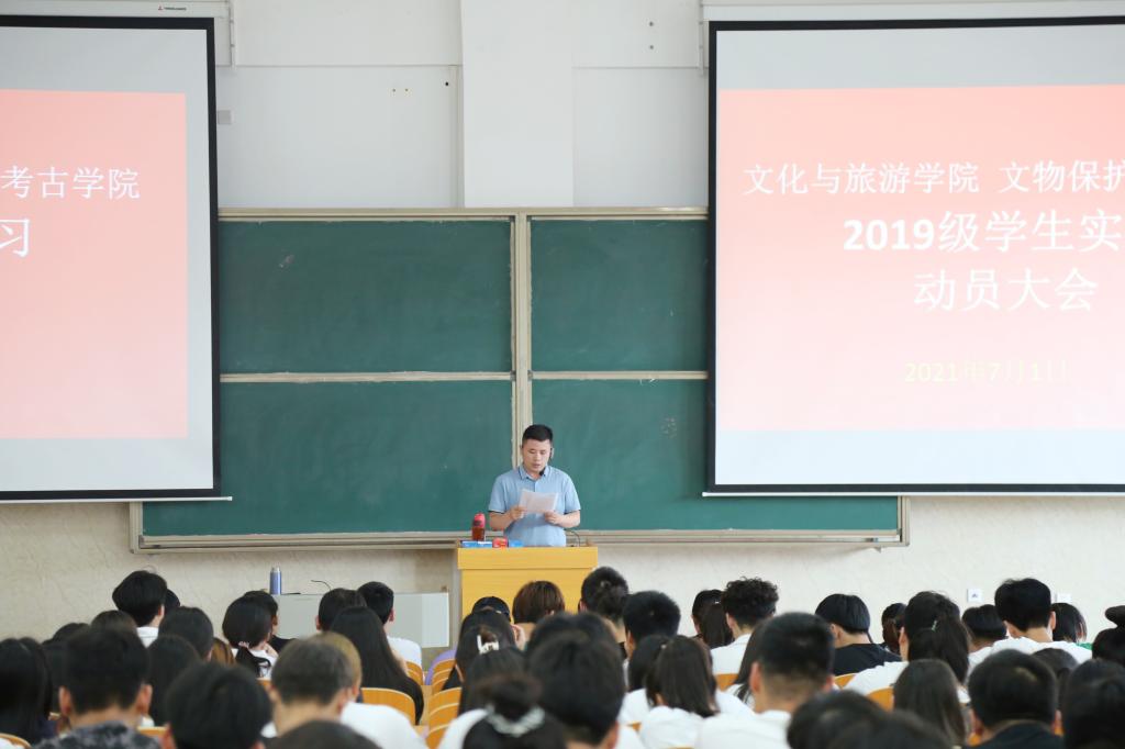 文物保护考古学院、文化与旅游学院各专业教学负责人,实习指导老师,各班级辅导员及两个学院2019级全体实习学生参加了会议。