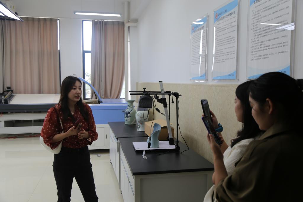 在文物保护考古学院的陶瓷器制作实训室、考古探掘实训室、陶瓷器修复实训室、金属文物修复实训室、纸质文物修复实训室、文物信息采集实训室、书画临摹室、装裱实训室,各教研室和实训室负责人结合开设专业科目,为新生介绍实训课的仪器设备、教学目标,并解答弹幕中参与直播新生的各种问题。