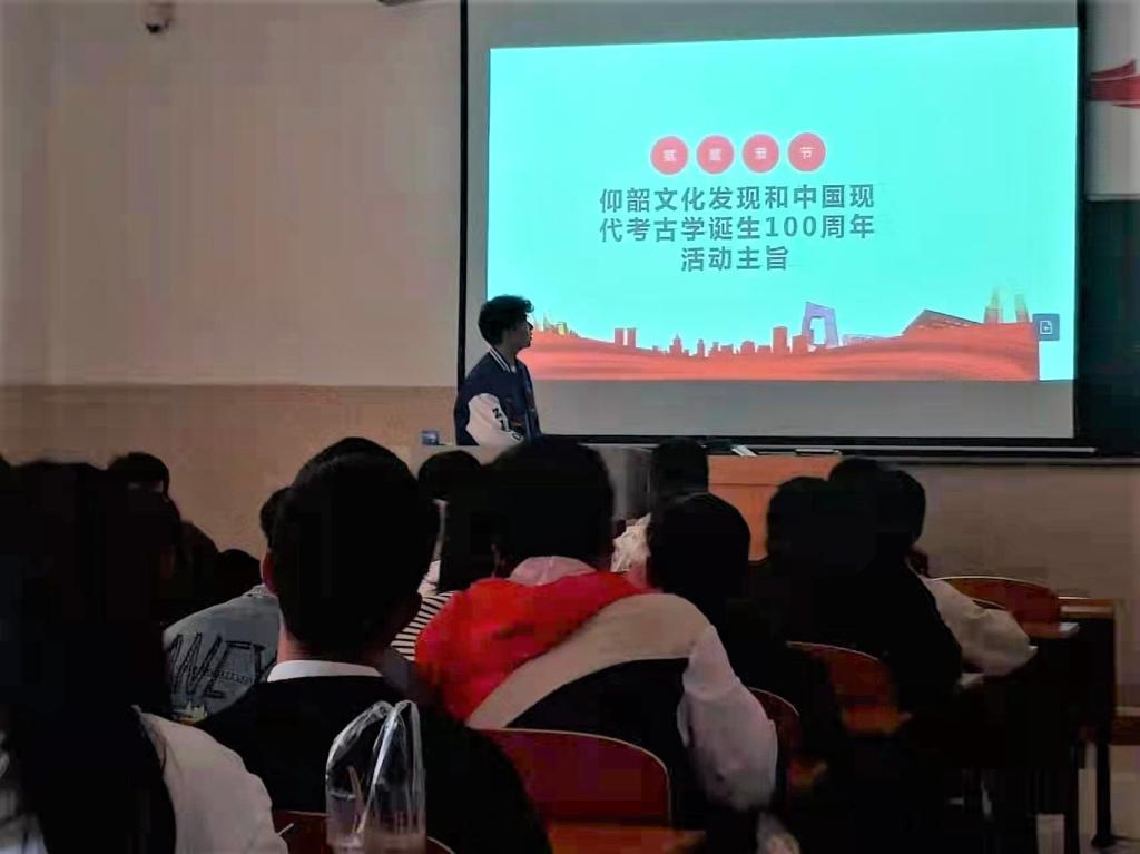 在各班团支书的带领下,通过讲解、欣赏照片、观看视频等多种形式,学生们共同学习了解了“仰韶文化”和“中国现代考古学”相关知识。