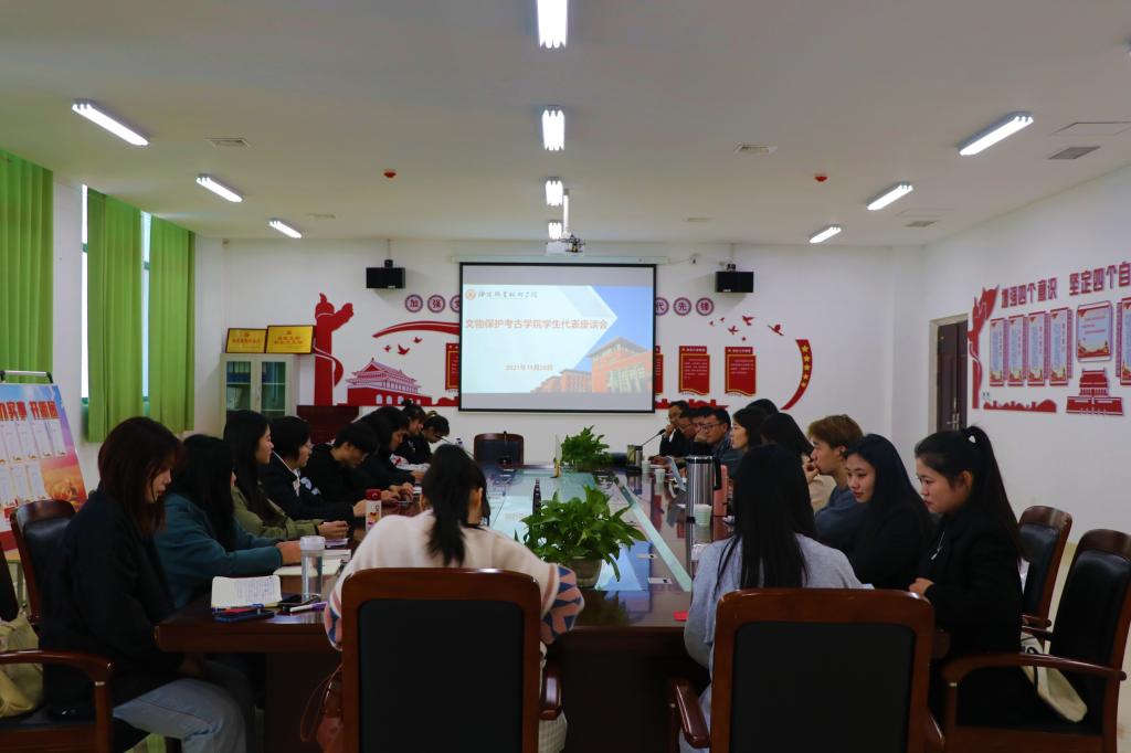 杨刚亮在讲话中表示,以座谈会的形式深入了解学生建议和意见,可以全面、及时了解学生需求,进一步提升优化学生管理工作,将我为“师生办实事”实践活动落到实处。希望学生代表们要多留意搜集同学们的合理化建议和问题,及时反馈给辅导员,发挥好桥梁作用,以便学院更好地为同学们做好服务。希望师生共同努力,努力将文物保护考古学院打造成凝聚力强、综合素质高的优秀学院,聚力双高校建设,为洛阳青年友好型城市建设助力。