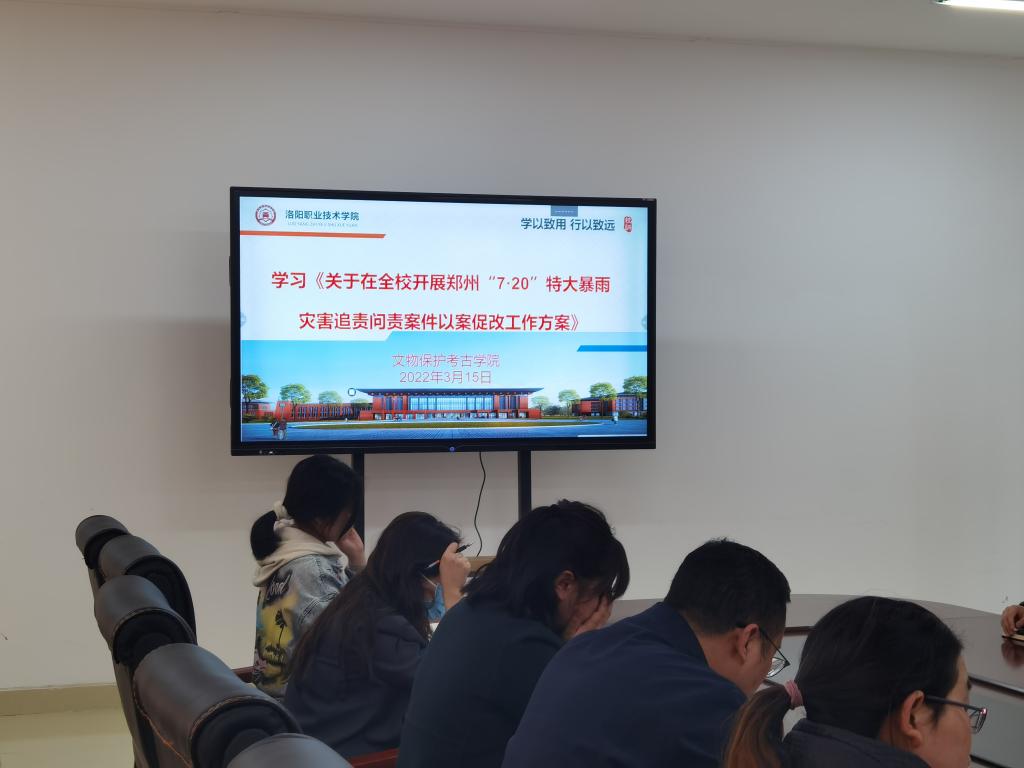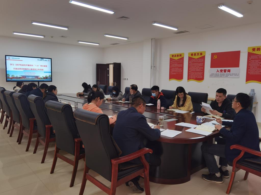 会上,大家共同学习了《关于在全校开展郑州“7·20”特大暴雨灾害追责问责案件以案促改工作方案》。