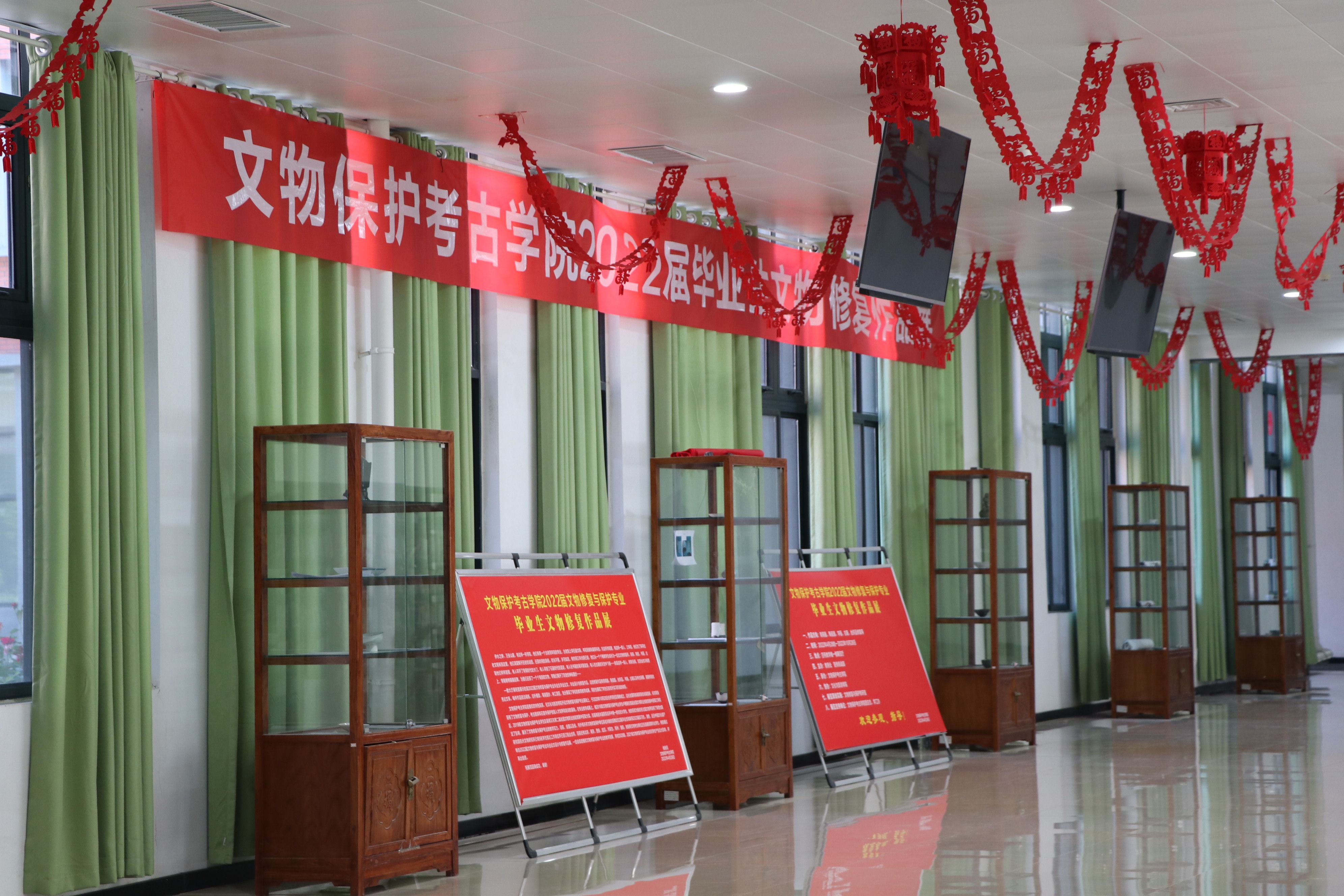 根据教务处下发的《关于做好2022届毕业生毕业实践环节工作的通知》和2022届毕业生答辩工作有关要求,文物保护考古学院制定了《2022届文物修复与保护专业毕业生毕业答辩方案》,4月17日,严谨的线上毕业答辩结束后,学院陆续收到毕业生们寄来的毕业修复作品。为了充分展现学校的教育教学成果和学生们在校外实习阶段的收获,学院对部分学生优秀毕业修复作品进行整理规划并在四号教学楼一楼大厅精心布展。