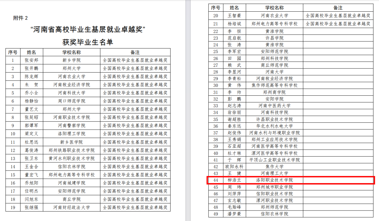 近日,河南省教育厅公布了“2022年河南省高校毕业生基层就业卓越奖”获奖名单,文物保护考古学院2019届文物修复与保护专业毕业生柳浩兰光荣上榜。