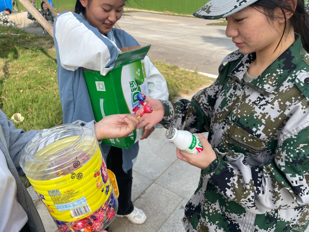 他们为军训的学长学姐们准备了饮料与糖果,简单且贴心。清凉的饮料解去了几分烈日的酷暑,棒棒糖则是带来了军训期间少有的甜蜜。同学们相互传递着水,脸上洋溢着开心的笑容,他们的身影成了军训期间一道亮丽的风景线。