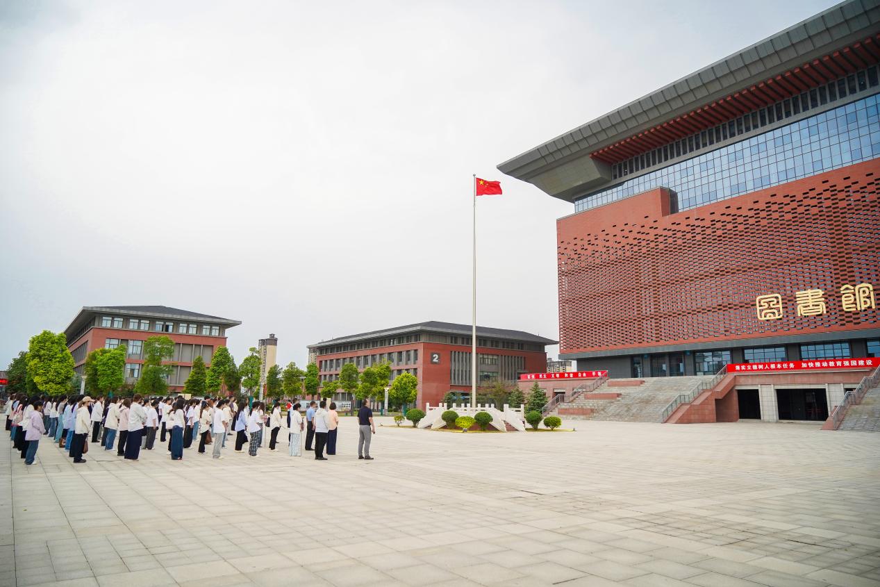 国旗护卫队队员迈着铿锵有力、整齐划一的步伐,护卫着五星红旗行进至升旗台。全场师生肃立,目光聚焦于鲜艳的国旗之上,伴随着雄壮激昂的《义勇军进行曲》,五星红旗冉冉升起。全体师生面向国旗行注目礼,高唱国歌,深情抒发对伟大祖国的无限热爱和崇高敬意。