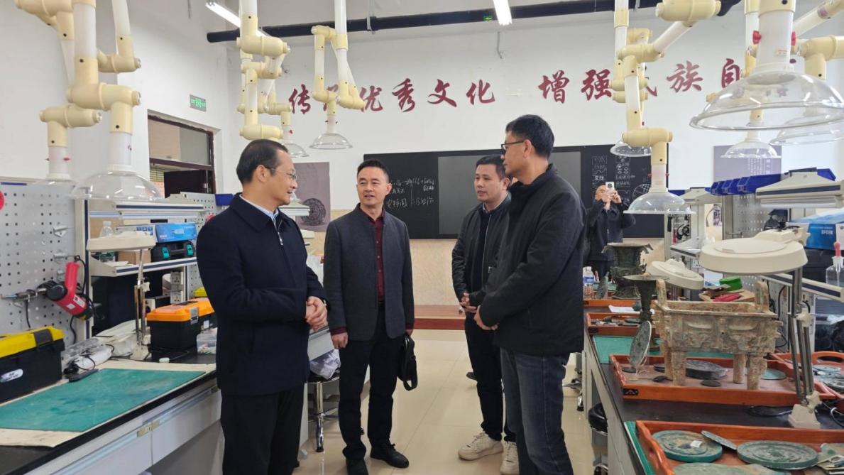 吴越强一行参观了文物修复、考古探掘、石窟寺保护实训室,对学院实训室建设表示高度赞赏。