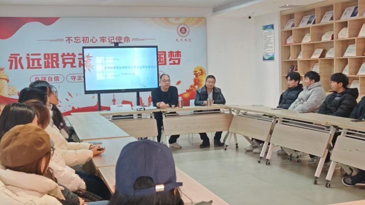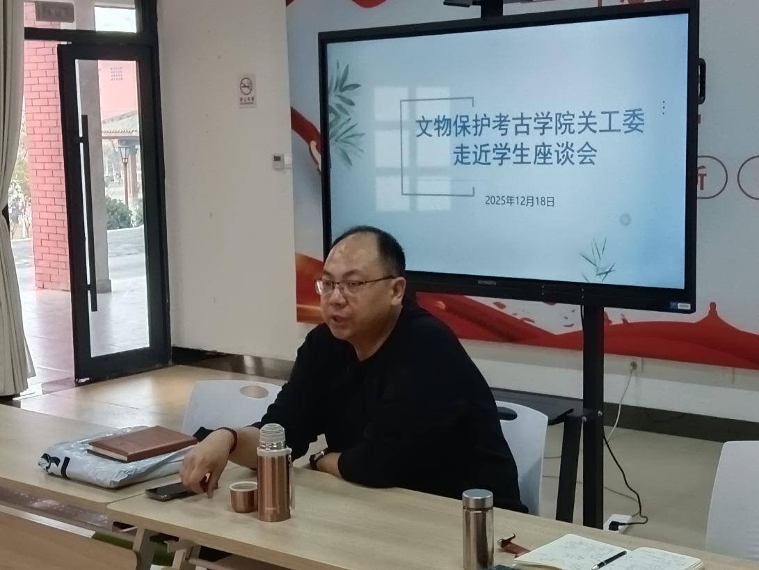 12月18日下午,文物保护考古学院关心下一代工作委员会在天工书院“一站式”学生社区党团活动室召开“走近学生”座谈会。学院党总支书记、关工委主任海洋与24文物修复301班全体学生面对面亲切交流,围绕实习实践、就业规划、专业成长等核心话题深入探讨,共绘未来发展蓝图。