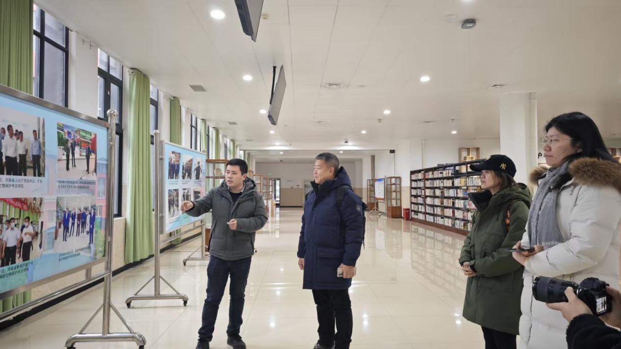 在金属文物修复实训室,侯贤俊详细介绍了青铜器除锈、焊接、做旧等修复工艺流程,展示了学院在金属文物修复方面的教学成果。在考古探掘技术实训中心,李德伟观摩了国内首创的“沉浸式”考古教学场景。参观过程中,李德伟对学院先进的实训设施和人才培养模式给予了高度评价。